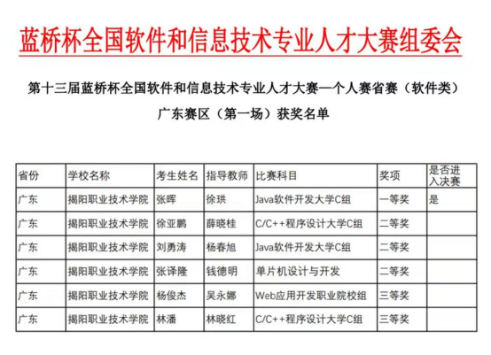 4月28日,工业和信息化部人才交流中心主办的第十三届“蓝桥杯”全国软件和信息技术专业人才大赛广东省赛区组委会传来喜讯,永利信息工程系6名学生在众多选手中脱颖而出,再创佳绩。其中,由徐珙老师指导的学生张晖勇夺软件类Java软件开发赛项一等奖,并成功晋级将于6月18日举行的全国总决赛。5名同学分别在其他赛项中取得3名二等奖、2名三等奖的佳绩。