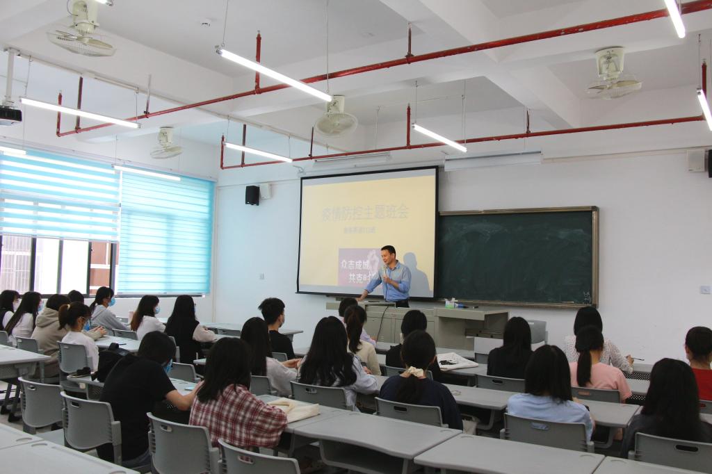 李桂鑫在会上和同学们进行了亲切的交流,仔细了解学生们疫情防控的准备和执行情况。针对目前疫情多点同时爆发的严峻形势,李桂鑫要求同学们要有效防疫抗疫,并提出四个要点:一是要正视疫情形势,做到“知己知彼,百战不殆”;二是要增强防疫意识,要有如履薄冰的心态,时刻做好防护,做到主动接种疫苗、注意个人卫生、加强体育锻炼;三是要严守防疫规定,非必要不外出;四是坚定防疫信心,相信党和政府,积极配合防疫规定,早日打赢这场防疫战。随后,班主任播放了防疫知识宣传视频,并组织同学们进行防疫知识抢答,加深同学们对防疫知识的理解。