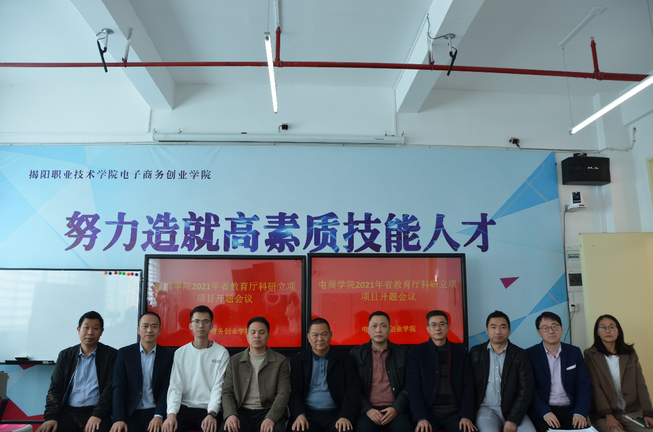 近日,电商学院获得省教育厅立项的两个课题,省教育厅2021科研立项之科技服务乡村振兴重点领域项目:《高职院校电商专业服务乡村振兴人才支撑体系建设策略研究——以77779193永利官网为例》(主持人:陈志钦)和省教育厅2021科研立项之青年创新人才项目(认定类):《全过程视角下高职院校电子商务创新创业人才评价体系研究》(主持人:林宇)在教研楼709室分别举行开题报告会。课题开题特邀评议专家、课题组核心成员等参加会议。电商学院党总支书记兼副院长张秋潮主持开题报告会并致欢迎词,学校科技设备处杨培新处长宣读省厅课题立项文件并对电商学院取得立项表示祝贺。