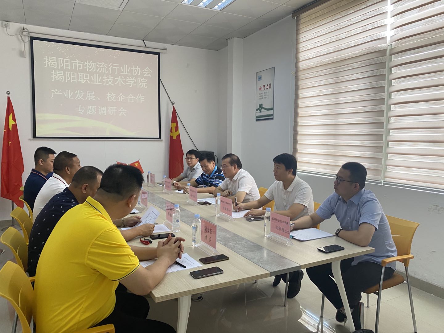 8月11日,学校党委书记李文升带领实训与信息中心负责人李镇伟、经济管理系主任林汉顺和党总支书记黄淯斌及相关专业教师到揭阳市物流行业协会召开政校行企座谈会,开展物流产业发展与校企合作调研。揭阳市物流行业协会会长林惠川、副会长邢海鸿、李荣安、秘书长林浜以及副秘书长杨晓参加活动,座谈会由协会林秘书长主持。
