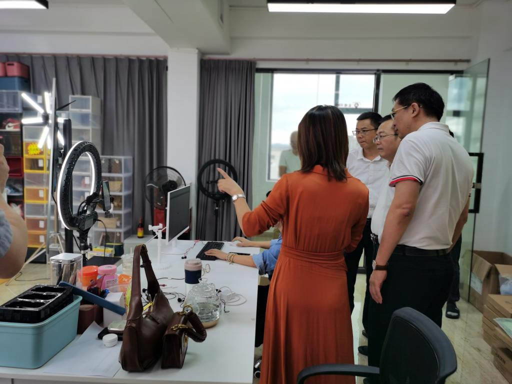 随后,一行人观看海兴集团宣传片,并参观运营中心办公场所、产品展厅、直播中心等。据了解,广东海兴控股集团创建于1989年,致力于塑料家居用品的技术创新研发、产品制造及销售,是中国国内生产塑料保鲜盒等系列家居塑料制品的龙头企业之一,家居产品涵盖浴室、厨房、卧室、书房、客厅、玄关等领域12000多种。目前,海兴已有永利毕业生就业人数40人,分布到集团各个部门;其中,2021年接收毕业生3人,经培训后已在车间担任小组组长。