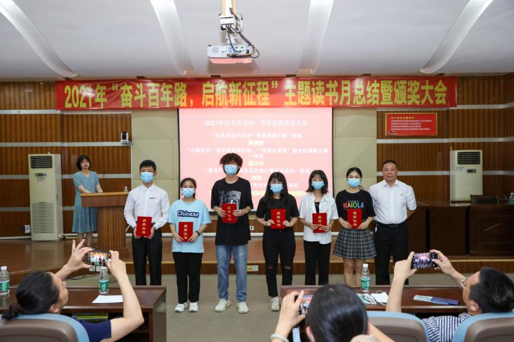 表彰会上,3位读书月活动成绩优秀、表现突出的同学上台发言。他们纷纷表示,本次活动加深了他们对党史的了解,坚定了听党话、跟党走的信念,增强了刻苦读书、立志成才的信心。接着,图书馆领导老师作为颁奖嘉宾为获奖学生颁发荣誉证书,并合影留念。