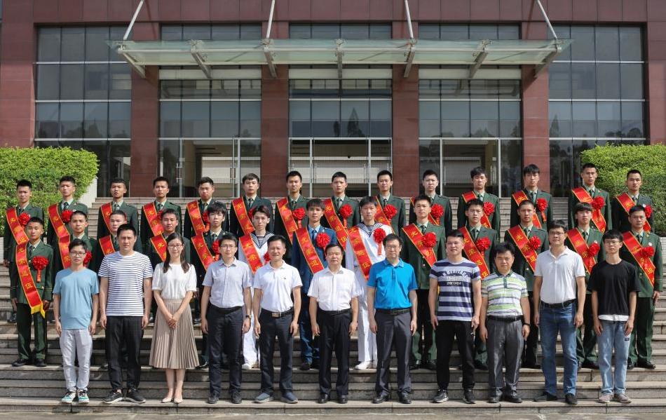 合影后,罗院长作现场讲话,他对同学们取得的优异成绩给予充分肯定,同时向同学们提出五点要求,一是提高政治站位,坚持爱党、爱国、爱社会主义高度统一,为全面建设社会主义现代化国家努力奋斗;二是不忘初心,坚定信念,要珍惜大学机会,努力学习,强化技能训练,不辜负部队和学校的培养;三是保持军人本色,立高标准,做好表率,发挥军人先锋模范作用;四是要把互帮互助的集体主义精神带入大学集体生活,努力成为学校树立优良校风和学风的一支生力军和突击队;五是争当征兵工作宣传员,争做国防教育排头兵。