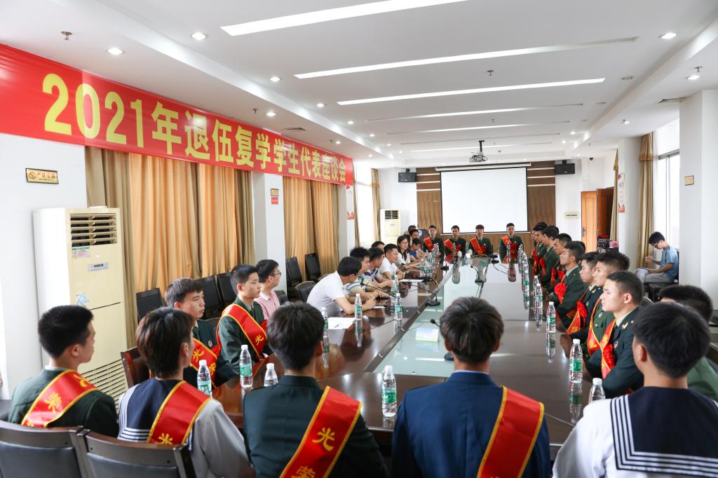 随后在507会议室举办退伍复学学生代表座谈会,参加本次座谈会有学生工作处处长王烁生、信息工程系党总支书记刘彩琼、机电工程系党总支书记方春城、艺术与体育系党总支书记连波杰、经济管理系党总支书记黄淯斌等和退伍复学学生代表。会议由学生工作处综合科科长陈炳亮主持。