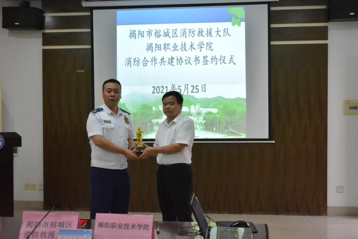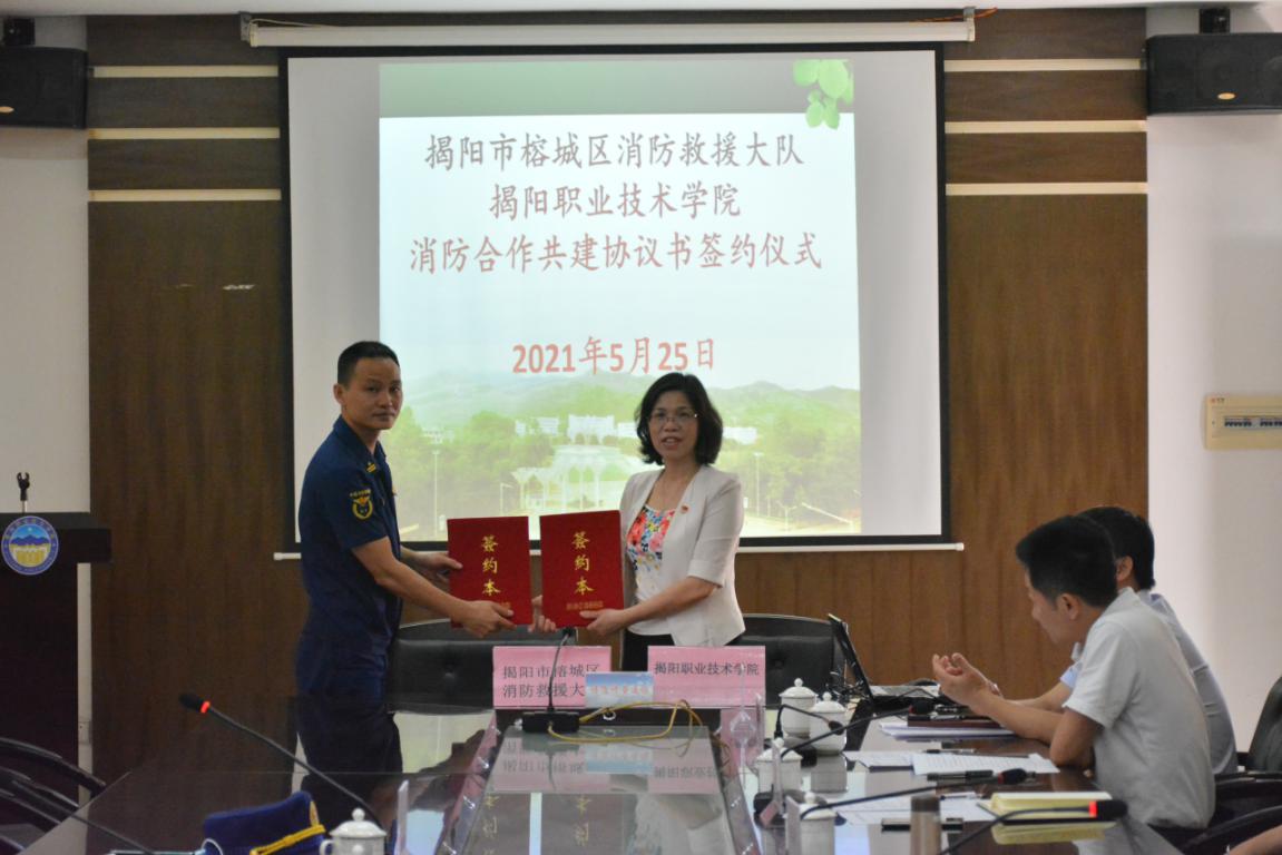 榕城区消防救援大队李金柱副大队长同学校刘瑞叶副院长签订