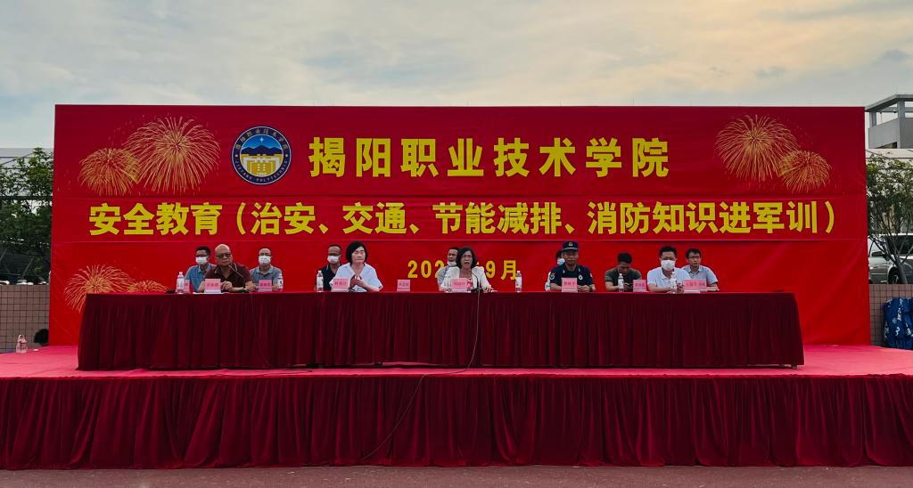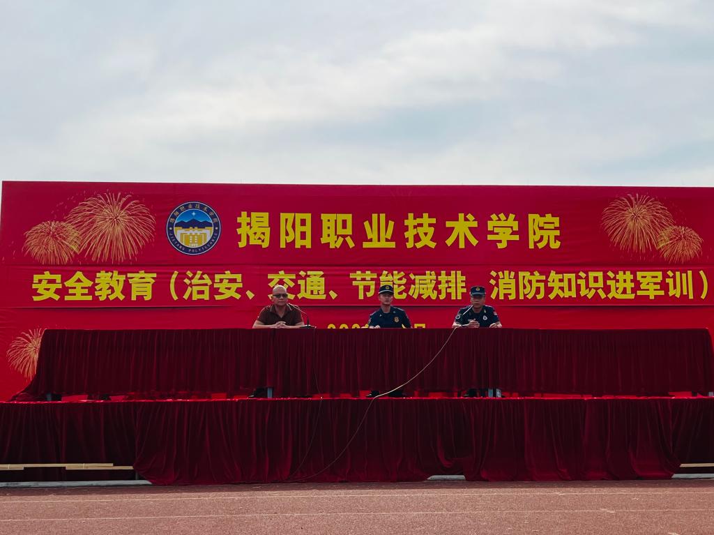 9月28日下午,学校与共建单位揭阳市榕城区消防救援大队为学生开展“安全教育(治安、交通、节能减排、消防知识进军训)”活动。活动由后勤服务处负责人黄新鹏主持。