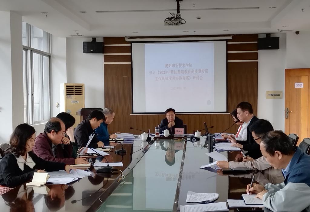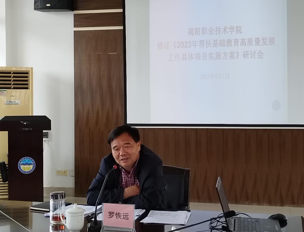 4月7日上午10:30,学校在行政楼507会议室召开修订《2023年帮扶基础教育高质量发展工作具体项目实施方案》研讨会。学校党委副书记、院长罗恢远,党委委员、副院长刘瑞叶,党委委员、组织人事处处长张汉良出席了本次会议。会议由刘瑞叶同志主持。