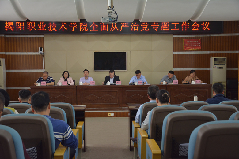 会议传达学习了2023年全国教育系统全面从严治党工作视频会议精神、2023年全省教育系统全面从严治党工作视频会议精神和全市建设山清水秀政治生态助推揭阳实现高质量发展行动动员部署会议精神。要求各级各部门要提高政治站位,认真落实健全全面从严治党体系任务要求,把严的基调、严的措施、严的氛围长期坚持下去,以彻底的自我革命精神一刻不停推进全面从严治党,为加快建设高水平有特色高职学院,办好人民满意的教育提供坚强保障。