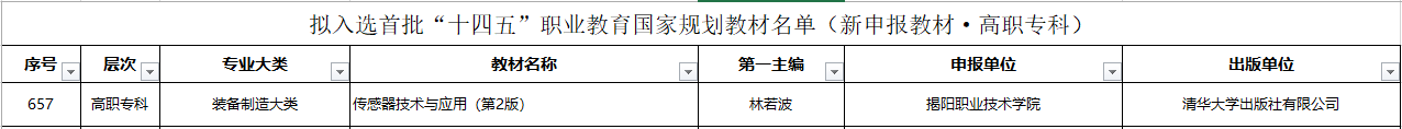 近日,教育部网站发布了《关于拟入选首批“十四五”职业教育国家规划教材名单的公示》,永利机电工程系林若波教授主编的《传感器技术与应用(第2版)》入选首批“十四五”职业教育国家规划教材(新申报教材·高职专科),这也是永利教师主编的教材首次获得国家级职业教育规划教材。