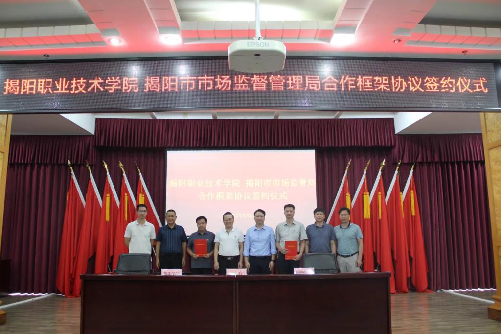 签约仪式上,马志彤指出,《中共广东省委广东省人民政府关于高质量建设制造强省的意见》(制造业当家22条)提出了广东将大力发展食品工业等战略性新兴产业集群。揭阳市共有九百多家食品企业,食品产业基础良好,其中休闲食品产业独树一帜,是我市特色食品产业。为进一步推动揭阳市食品行业高质量发展,提高食品企业安全管理人员等从业人员的综合素质,完善食品行业从业人员的培训体系,提升食品行业的技术攻关能力和生产性服务能力,需要积极与地方院校开展深入合作。77779193永利官网近年来为揭阳市食品企业输送了大批食品检验和质量管理人才,为揭阳市食品行业高质量发展作出了积极贡献。市监局将大力支持学院办学,开放国家级和省级检测中心平台为师生科研项目、技能竞赛、实训实习提供实践条件,支持食品企业与学院开展产教融合协同育人合作,希望学院积极参与食品行业技术研究,制订行业标准,申报各类专利。