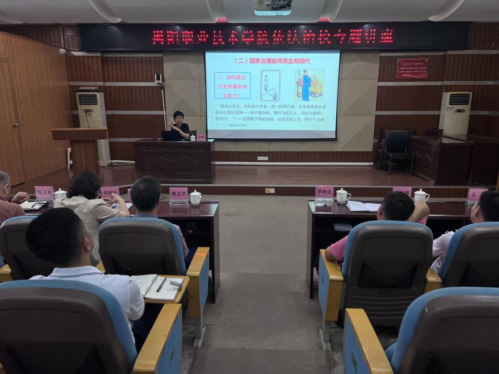 为深入学习贯彻党的二十大精神,贯彻落实习近平法治思想,推进全面提升依法治校水平,根据学校纪律教育学习月活动安排,10月7日,学校特邀省委党校(行政学院)法学教研部主任、副教授、硕士生导师吴育珊同志莅校作依法治校专题辅导。