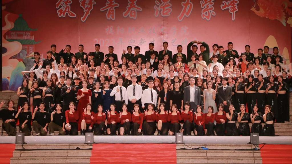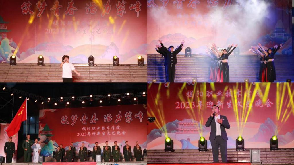 “筑梦青春,活力紫峰”,10月25日晚,永利在行政楼前举行2023年迎新生文艺晚会。学校党委副书记姚玉平,学生工作处(团委)负责人、各系部党总支书记及2023级新生共2000余人参加本次晚会。