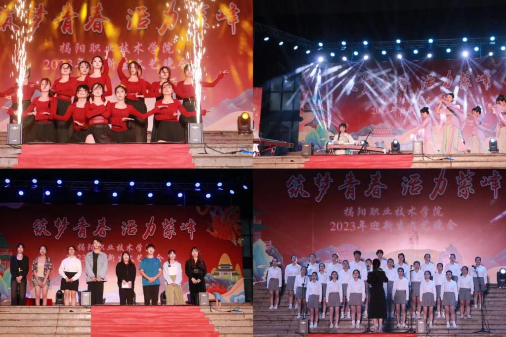 正值青春年华的揭职院学子们,应当生逢盛世而不负盛世,这正好呼应晚会第二个板块,薪火相传自是声声不息。服装设计协会带来的作品走秀《无字史书》带我们身临其境,声起,乘长风,台步,越古今。岁月峥嵘,山河为证;文脉悠远,与古为新。对历史最好的继承,就是创造新的历史;对中华文明最大的礼敬,就是创造人类文明新形态。舞蹈《英花正开时》更是激起了一代代中华儿女对华夏文明的敬仰之情,国粹血脉自动觉醒。五位青年教师共同朗诵的《青春力量》,气势磅礴,激昂向上,进一步推动晚会气氛达到高潮。薪火相传,上善流芳中国梦;笃行志远,不负韶华行且知。