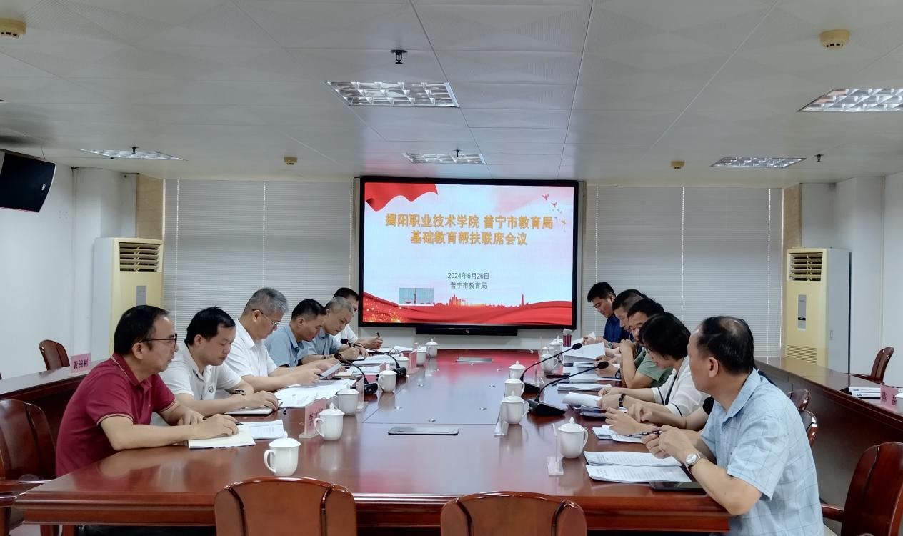 为扎实有序推进永利与普宁市教育局基础教育对口帮扶工作,6月26日,学校党委副书记、院长罗恢远带领教务处、学生工作处、科技与设备处、师范教育系、信息工程系、继续教育部负责人赴普宁市教育局召开基础教育帮扶联席会议。