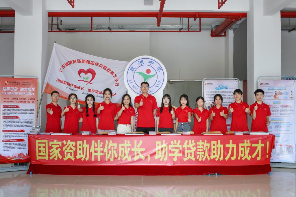 本次活动主题为“国家资助伴你成长,助学贷款助力成才”。下乡队伍由学生资助中心老师、辅导员老师和学生志愿者等13人组成。7月5日,志愿宣传队首先来到里湖镇里湖中学开展活动。在活动现场,宣传队设立了资助政策宣传展板,向学生派发《广东省学生资助政策简介》、《生源地助学贷款申请指南》等宣传资料,并提供国家资助和助学贷款政策的现场咨询,细心和耐心地为同学们讲解和宣传国家资助和助学贷款政策,同时开展相关的问卷调研活动。现场活动结束后,志愿宣传队成员分小组深入班级开展国家资助和助学贷款政策的宣讲,让学生对国家资助政策有了更深入全面的了解。