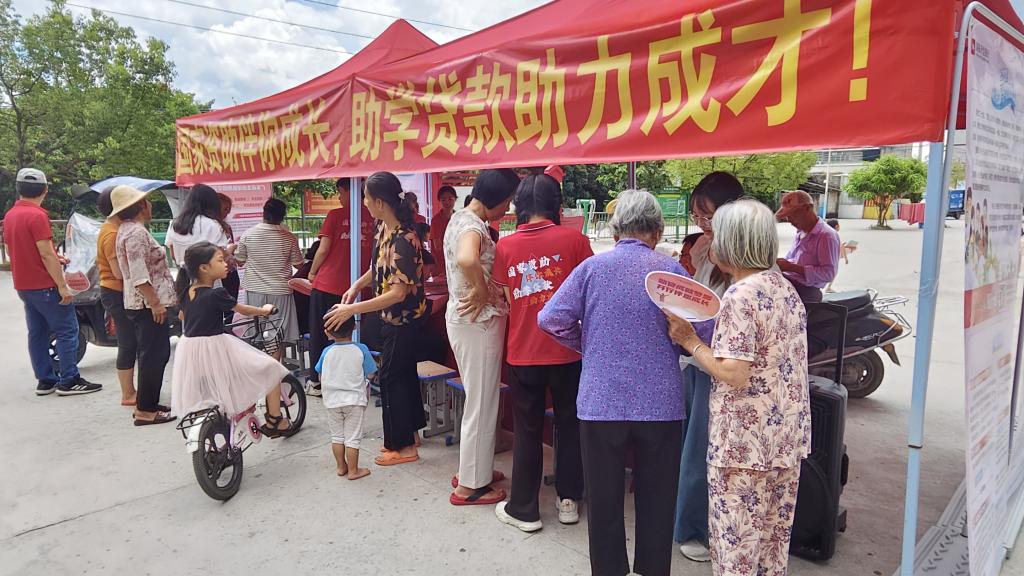 7月6日,宣传队来到了里湖镇蓬和村,在该村设立“资助政策咨询点",开展咨询和宣传活动。同时,宣传队还冒着烈日,对群众开展宣传讲解,派发宣传资料,扩大宣传效果。在集中宣传后,学生志愿者将化身为“资助宣传大使”,带着宣传资料回到家乡,继续深入开展宣传和调研活动。