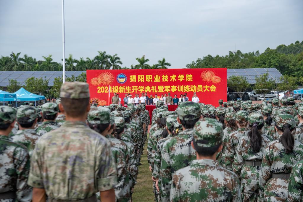 9月19日上午,2024级新生开学典礼暨军训动员大会在学校运动场举行。校领导、承训部队领导、教务处负责人、学生工作处负责人,各系(院)党政负责人、新生辅导员以及2024级2475名新同学参加活动。仪式由党委委员、副院长刘瑞叶主持。