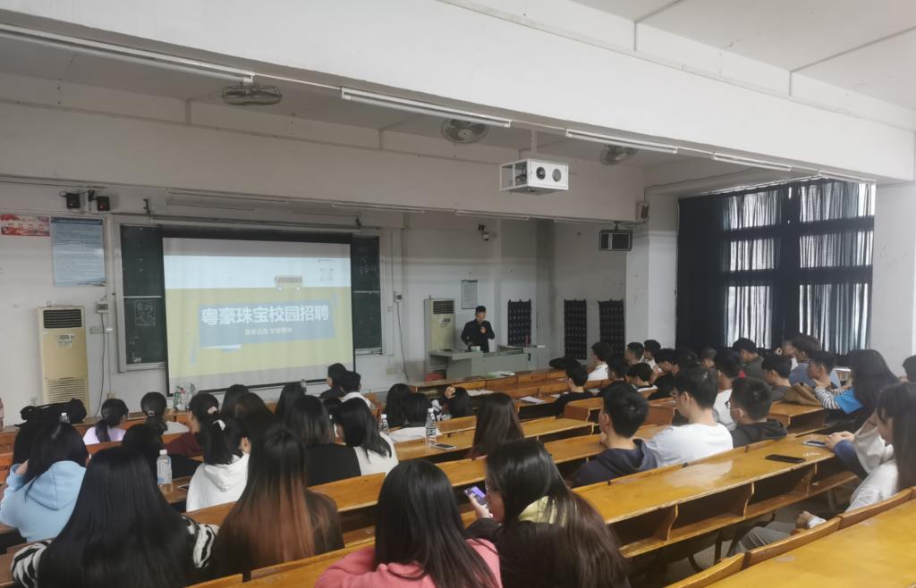 下午,深圳市粤豪珠宝有限公司到永利教学楼CT32教室举办校园招聘会。宝玉石鉴定与加工专业师生参加本次招聘会。