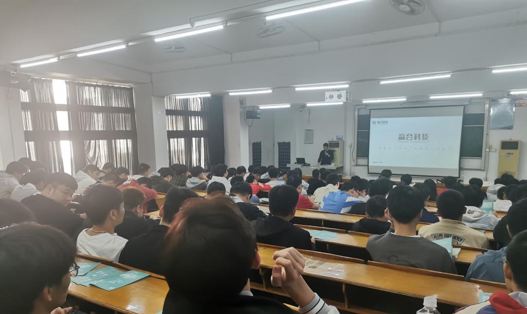 赢合科技股份有限公司人力资源经理周期珑向同学们系统地介绍了公司的发展历程、发展理念、六大生产基地、公司代表客户、发展现状及未来规划、企业文化、人才策略等基本情况。同学们纷纷与企业方就岗位要求、福利待遇、发展机遇等问题进行了现场交流,气氛十分活跃。在招聘会上,人力资源招聘负责人对同学们提出的问题进行详细解答,包括工作岗位、工作环境、工资待遇等问题,并表达了对同学们加入他们公司的愿望。