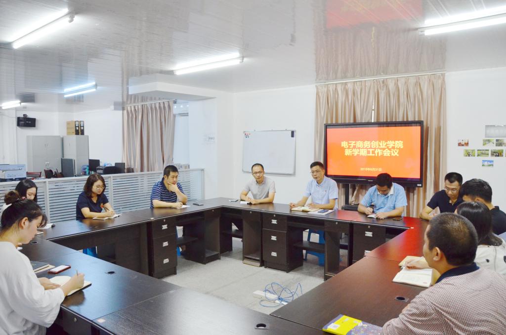 8月31日,电子商务创业学院在美工工作室召开新学期工作会议。会上,电商学院党总支书记兼副院长张秋潮组织学习习近平新时代中国特色社会主义思想和党的十九大精神,要求全体教职工要坚定理想信念、践行根本宗旨、加强道德修养;会议传达学习了学校新学期教职工大会上李文升书记以及龚善初院长的讲话精神,要求全体教职工认真领会李文升书记和龚善初院长的讲话精神,贯彻到新学期各项工作中。此次会议由张秋潮副院长主持,电商学院全体教职工出席会议。