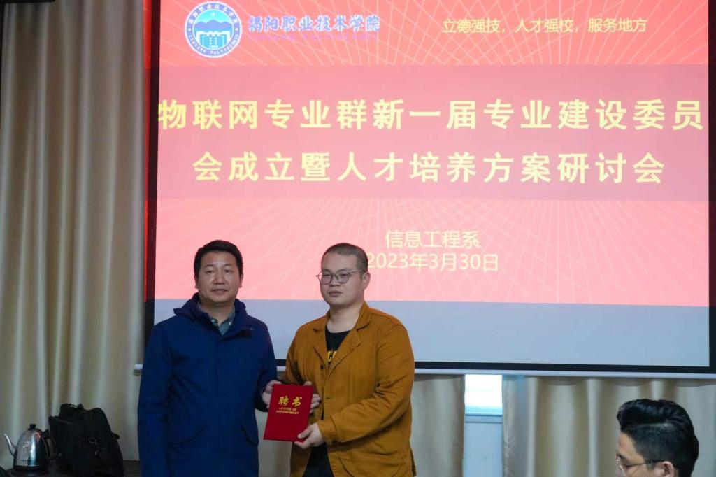 信息工程系教研室主任钱德明对物联网专业群建设的情况作了简要介绍,并对优秀毕业生代表林洪勉经理颁发了专业建设委员会委员聘书。