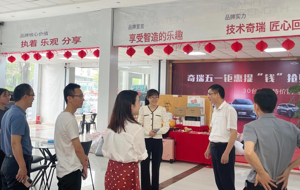 在揭阳市宏达汽车贸易有限公司,张秋潮副院长一行受到企业方经理的热烈欢迎。校企双方对去年以来双方开展的合作情况进行了总结回顾,分析了今年开展产教融合的岗位设置与培养模式。看望了在宏达汽车贸易有限公司的优秀实习生,勉励学生要立足岗位、服务企业,快速成长。宏达汽车贸易有限公司自成立以来,一贯以"诚信待人、客户至上“作为企业的经营宗旨,赢得了广大客户的信任和支持,业务稳步发展,连年来被评为“揭阳市守合同重信用企业"和各品牌企业的"优秀经销商”。近年来,努力拓宽新媒体营销渠道,在新媒体直播、新媒体文案等岗位上吸纳了永利电商专业大量学生。