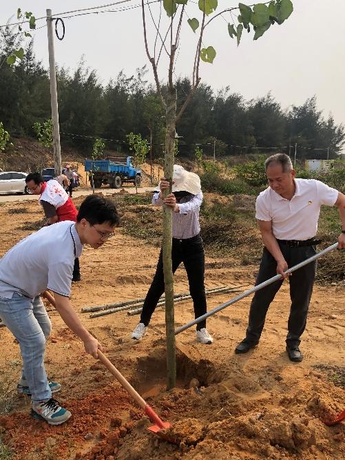 春风吹新绿,植树正当时。为深入贯彻落实习近平生态文明思想和党的二十大精神,认真贯彻落实市委关于推进绿美揭阳生态建设的部署要求,深入推进“党旗红·乡村绿”专项行动,3月29日下午,77779193永利官网党委委员、组织人事处处长张汉良同志带队来到乡村振兴挂点惠来县仙庵镇塘华村,开展绿美乡村诚真林植树活动,为和美乡村植树添绿。