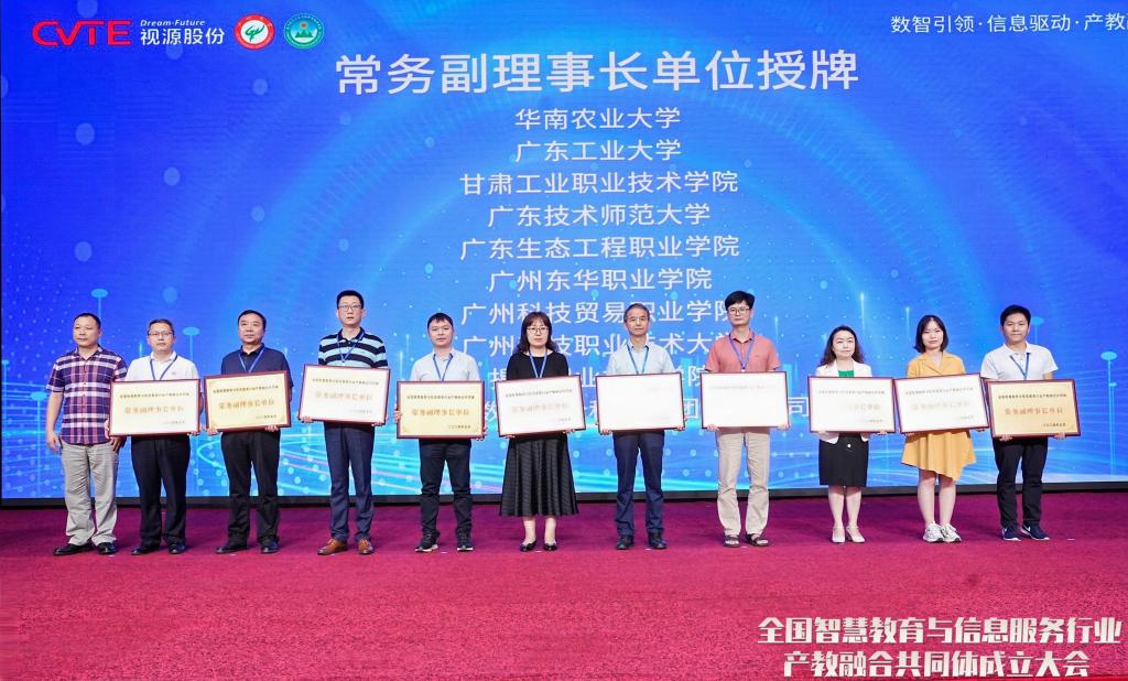 全国智慧教育与信息服务行业产教融合共同体是由广州视源电子科技股份有限公司、广州大学、广州现代信息工程职业技术学院作为牵头单位,广东省高新技术企业协会、广东省计算机学会、广东省云计算应用协会、广东省智慧城市产业技术创新联盟指导,汇聚相关企业、普通高校、职业院校、科研机构等多方力量,共同发起的产教融合组织。