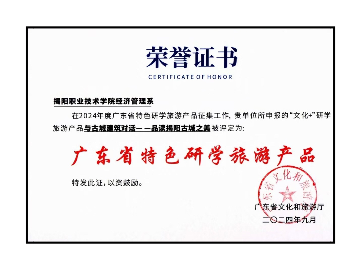 6月,广东省文化和旅游厅组织开展了 2024 年度广东省特色研学旅游产品征集遴选工作,经地市及有关单位推荐、材料审查、专家评审等程序,于近日公布评选结果,永利经济管理系组织师生团队,立足我市实际,充分挖掘揭阳古城博物馆、文保单位等特色研学旅游资源,推出“与古城建筑对话——品读揭阳古城之美”研学产品,成功入选“文化+”特色研学旅游产品名单,为我市研学产业发展提供新方向、新思路。