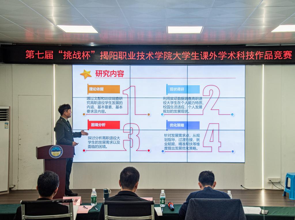 决赛现场,各参赛团队以饱满热情、认真严谨的态度,在规定时间内通过PPT展示、实物演示等形式对竞赛项目的项目立意、思维创意、取得成果等向评委和观众进行了精彩展示,并回答评委质询提问。评委重点考核了参赛作品的科学性、创新性、现实意义等方面,对同学们在实践中取得的成果给予了肯定,并就作品的后续改进和完善提出宝贵意见。