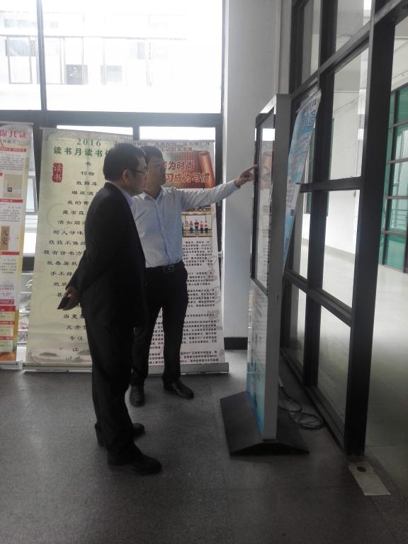 李书记充分肯定了图书馆近年来的发展思路与工作实效,同时就图书馆的建设提出了三点要求:1、少花钱,多办事。学校现在条件有限,但是基础一定要打牢。图书馆是学校的信息文献中心,是教学科研的基础,图书馆要根据十三五发展规划并结合学校实际情况,少花钱多办事,做好图书馆建设规划,加强资源建设,改善图书馆的阅读环境及体验。2、积极争取校外合作,开发与利用好各类文献资源。发挥其在促进“创新强校”工程建设、增强办学实力、促进地方经济社会发展的积极作用。3、内部挖潜,要善于利用图书馆的人才和技术力量。从加大信息化建设力度、加大数字资源推广,加强地方特色资源建设,加快数字资源阅读体验区的建设步伐等方面,建设并彰显图书馆的地方特色和品牌特色。
