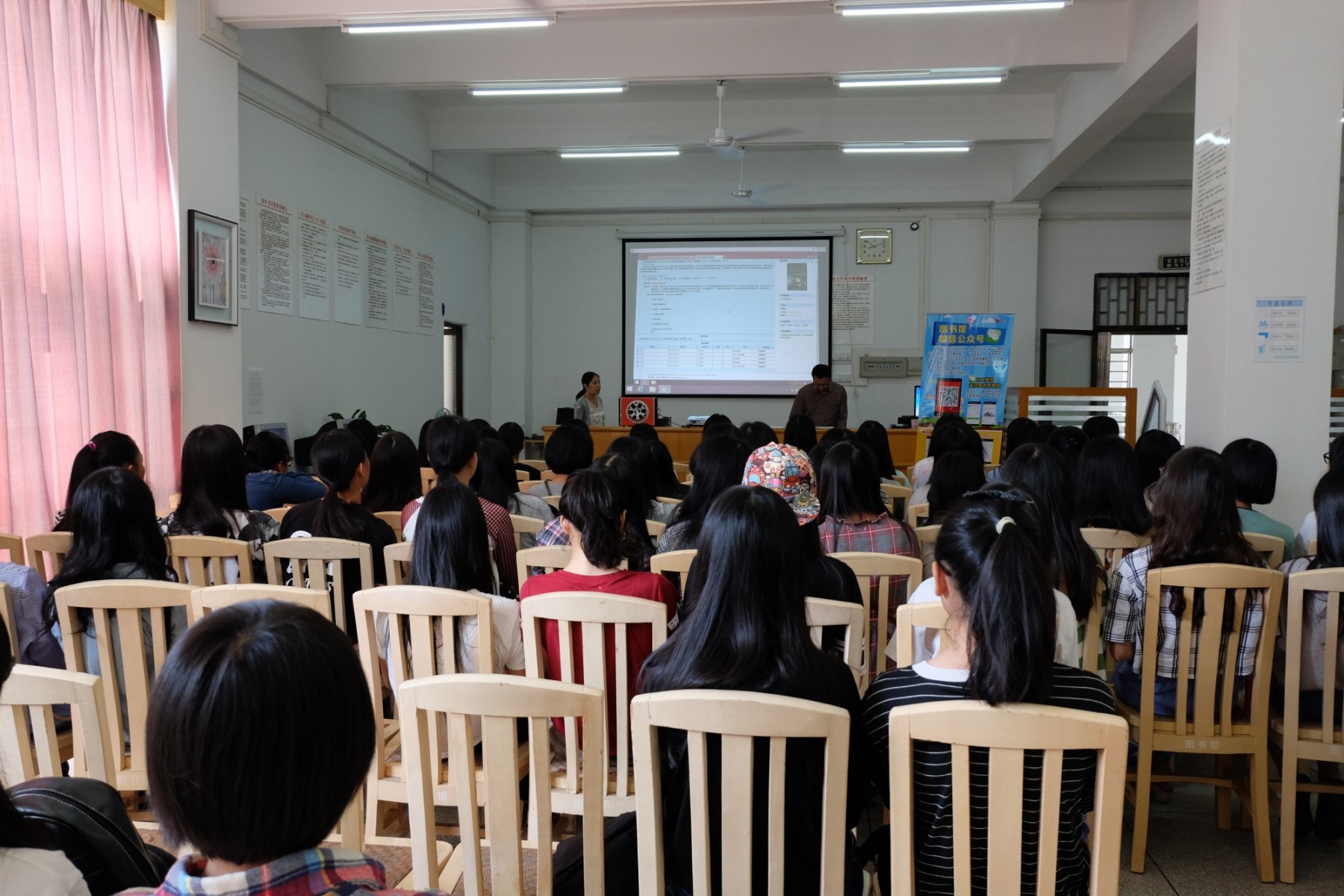 为了保证本次培训工作有效开展,图书馆多次召开会议部署有关工作,精心组织、设计了《图书馆读者指南》小册子,制作入馆教育多媒体培训视频。入馆教育通过播放视频、发放《图书馆读者指南》小册子以及现场参观、演示、答疑等环节组成。此次活动,在图书馆所有工作人员的共同努力下,在各院系的大力支持与配合下,一共举办34场培训,培训新生近2600名,工作顺利结束。