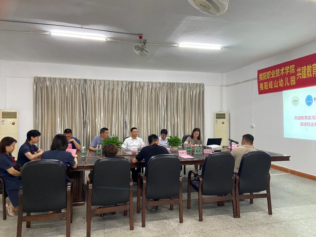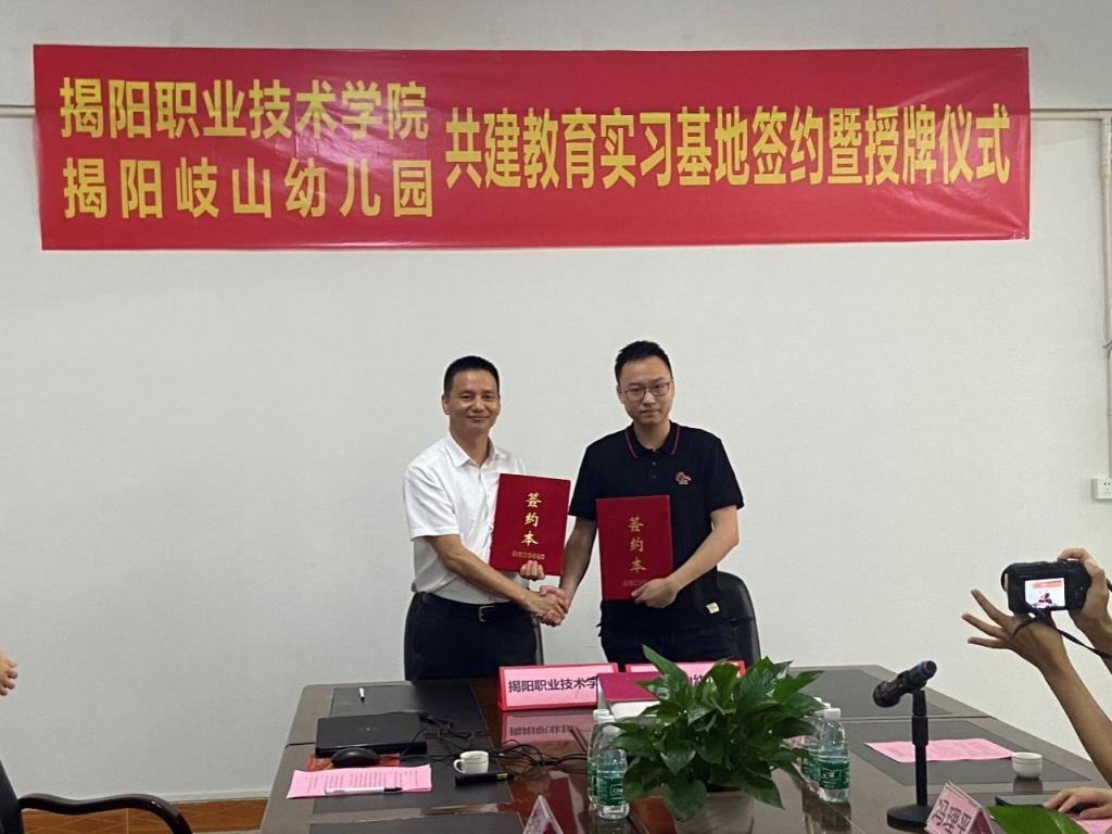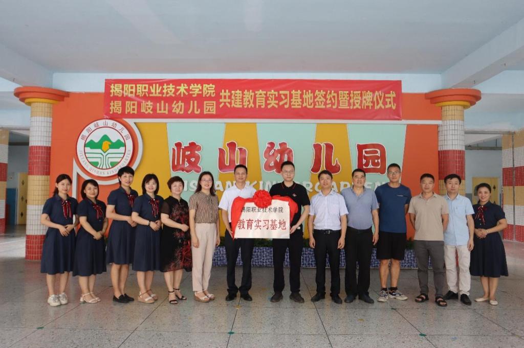 5月13日下午,永利在揭阳岐山幼儿园会议室举行了“77779193永利官网与揭阳岐山幼儿园共建教育实习基地签约暨授牌仪式”,副院长李桂鑫、实训与信息中心主任李镇伟、艺术与体育系主任王旭惠,岐山教育副董事长黄桂燊、岐山教育董事会办公室主任许桂娜、岐山教育幼教部总园长冯理平、岐山教育幼教部各幼儿园园长以及艺术与体育系专业老师等参加了活动。