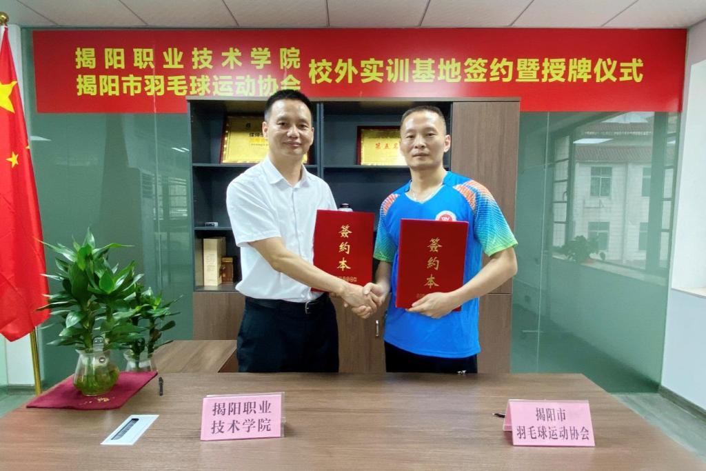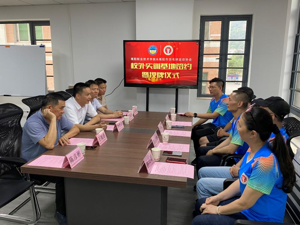 5月13日下午,永利在揭阳市羽毛球运动协会会议室举行了“77779193永利官网与揭阳市羽毛球运动协会校外实训基地签约暨授牌仪式”,副院长李桂鑫、实训与信息中心主任李镇伟、艺术与体育系主任王旭惠,揭阳市羽毛球运动协会协会会长李冬阳、常务副会长郭春晓、副会长刘朝晖、副会长林玲娜、秘书长郑奕龙以及艺术与体育系部分专业老师等参加了活动。
