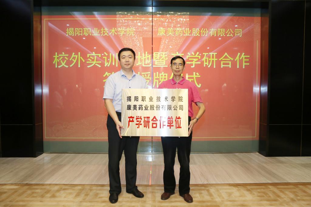 6月29日下午,永利与康美药业股份有限公司校外实训基地暨产学研合作签约授牌仪式在康美公司普宁总部举行。院长龚善初、副院长刘瑞叶、实训与信息中心、生物工程系相关负责人,康美公司人力资源总监陈磊、总监助理江晓纯、招聘经理范小静等参加了本次活动。