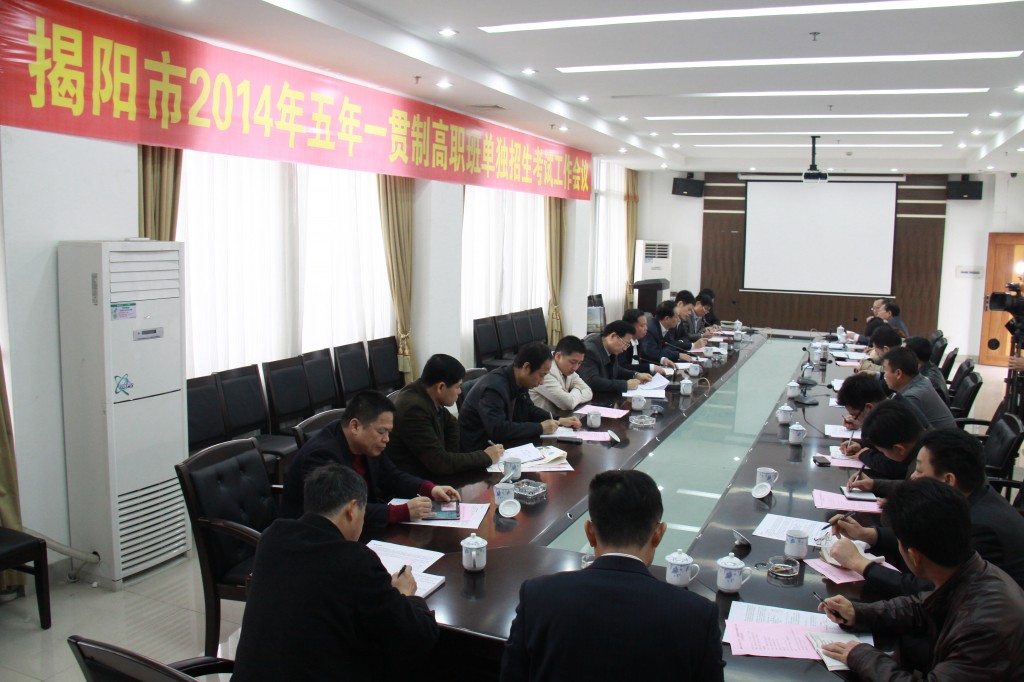 3月3日上午,揭阳市五年一贯制高职班单独招生工作会议在我院召开。学院党委书记李文升,揭阳市教育局副局长吴榕生、揭阳市招生办主任陈建钦,各县(市)区招生办主任等领导出席了会议。会议由院长龚善初主持。