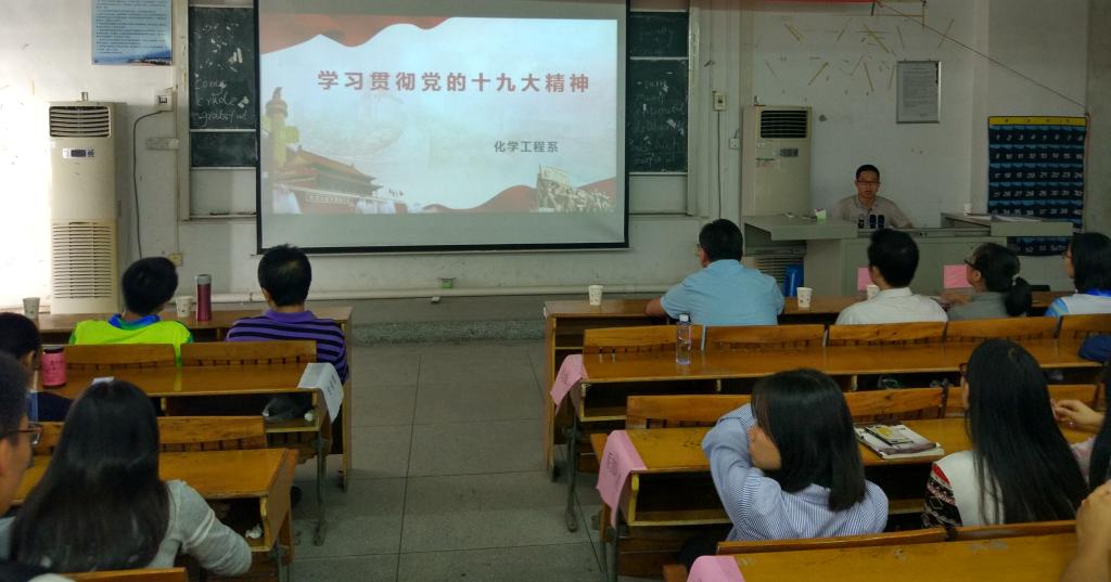 2017年11月16日中午12:30,应《中共77779193永利官网委员会关于认真学习宣传贯彻党的十九大精神的通知》,我系党总支在教学楼BT32举行学习贯彻党的十九大精神的会议。参会人员有我系党总支赖少坤书记、江英志主任、我系全体老师及学生,本次学习会议由赖少坤同志主持。
