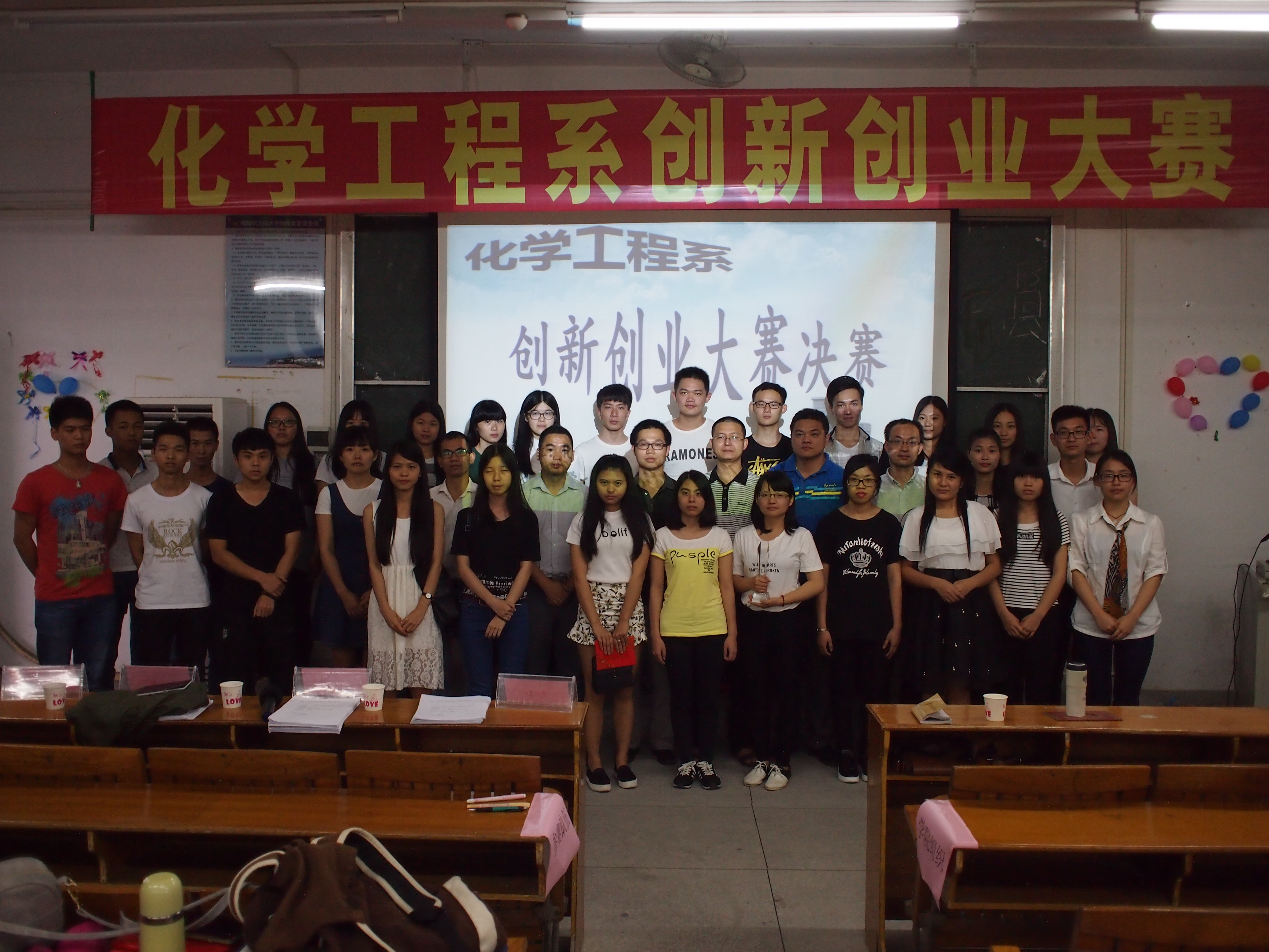五月的第二个星期是全国“职业教育活动周”,为进一步推动我系创新创效创业工作,引导和帮助学生树立创新意识、培养创新能力、锻造创业精神,我系举办大学生创新创效创业大赛。决赛于2016年5月12日下午在教学楼BT22举办,评委老师有电子商务创业学院朱良辉老师、经济管理系孙警老师、化学工程系王宜民老师、谢晓龙老师、李静老师,出席的老师有化工系党总支赖少坤副书记、陈关涛、陈敏杰,院各学生组织和系部代表以及化工系全体同学参加了活动。比赛由林汉强、黄敏祝主持。