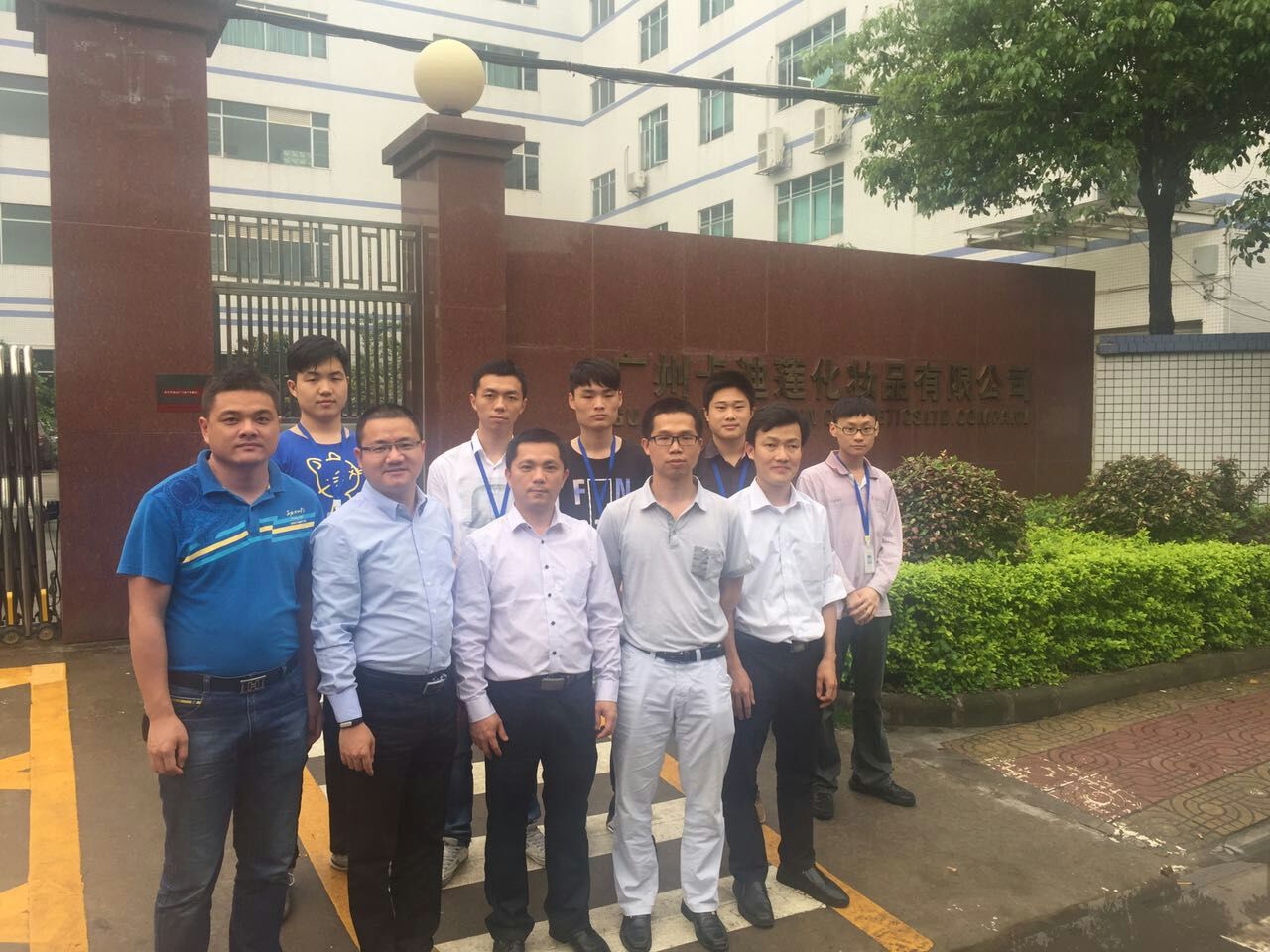 为了保证实践教学(实习)的质量,完善学生顶岗实习管理制度,化学工程系督导组深入企业对学生顶岗实习进行专项督导。4月21日,系督导组长江贵波教授、系副书记赖少坤、教研室主任林壮森和陈关涛老师一行四人到广州卡迪莲化妆品有限公司巡视学生曹嘉洛、江伟杰、林宗涛、张铁辉、梁杰森等顶岗实习情况,受到卡迪莲化妆品有限公司人力资源总监洪绿群和人力资源部经理邓一斌的热情接待。广州卡迪莲化妆品有限公司隶属卡姿兰集团(香港)有限公司,主要生产中高档化妆品,公司通过了ISO质量管理体系认证。公司不断引进国外先进技术和生产设备,一路领先国内彩妆界,是目前国内彩妆行业的龙头企业。公司旗下拥有两大国内一线时尚化妆品品牌:“卡姿兰”和“凯芙兰”,目前两大品牌已成为国内高知名度的化妆品一线领导品牌,是行业民族品牌的时尚标杆。在洪总监和邓经理的带领下,参观了拥有近5万平方米的GMP标准现代化生产厂房,了解企业的主要产品和唇膏等化妆品的生产工艺,了解学生所学专业知识在生产线上的具体应用,并充分感受了该公司始终坚持全球化原材料采购、融合最新科技,倡导“美妆亦护肤”,让每一位爱美人士都能拥有美丽的健康色彩时尚理念。