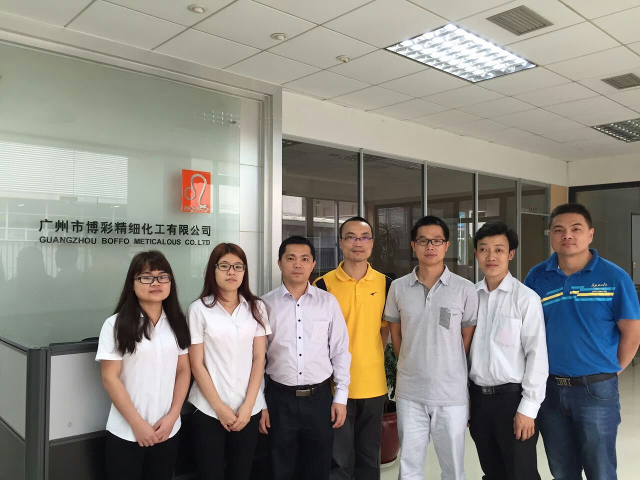 4月22日,到神山工业园巡视在广州市博彩精细化工有限公司顶岗实习的邓冰和彭玉彩两位同学,受到郭燕城经理的热情接待。广州市博彩精细化工有限公司成立于2002年5月,是一家集研发、生产、销售、服务为一体的专业美发用品公司,占地2万多平方,拥有生产洗发、护发、饰发、烫发、染发等十多条专业的生产线,日生产能力达100吨。