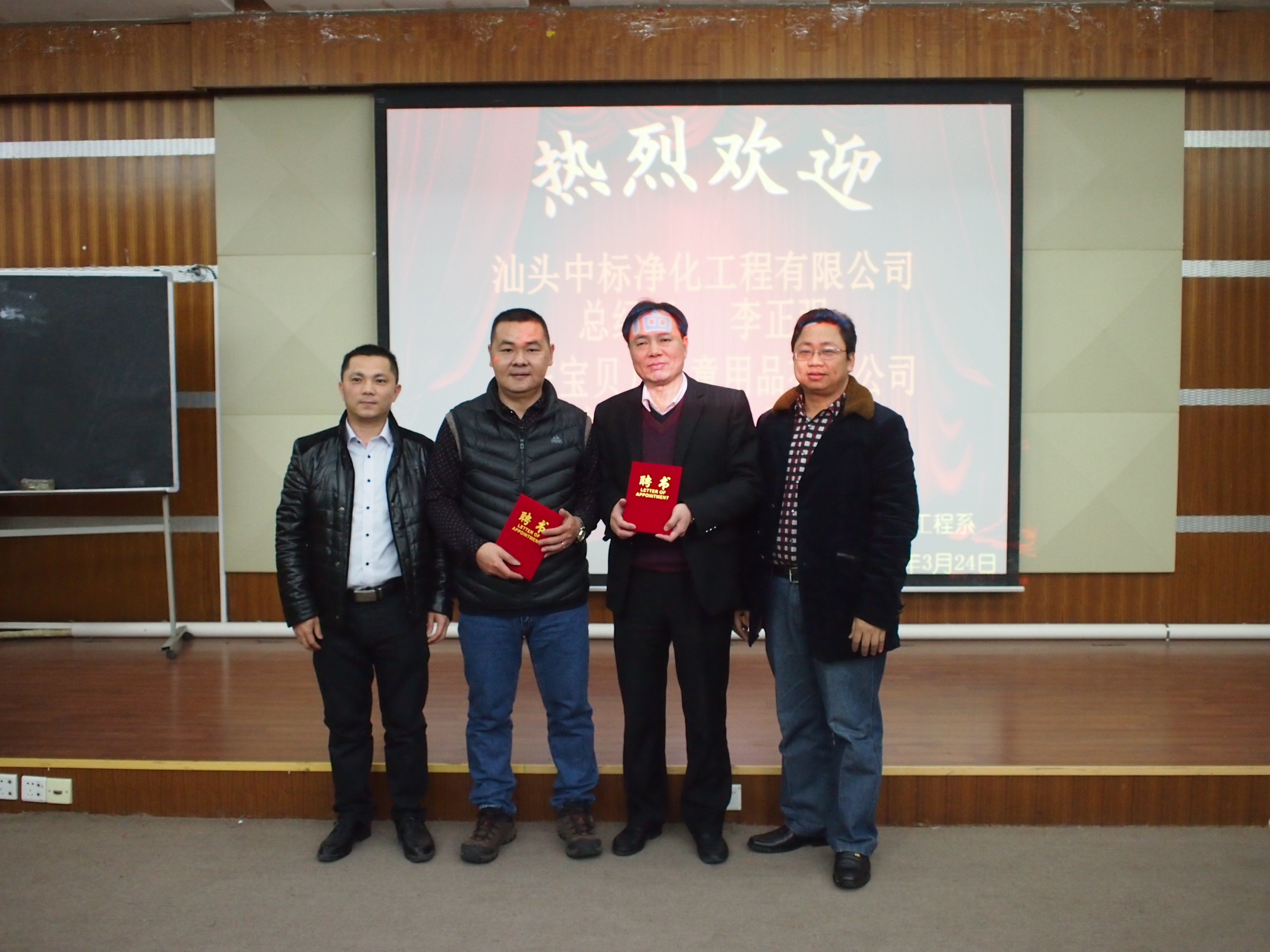 本次学术讲座李总经理还分享了工程实例,内容深入浅出,增加了师生们对净化工程技术在化妆品工艺的应用的了解,使学生们拓宽视野,加深对化妆品行业的认识。最后,化工系江英志主任和江贵波老师江为李总经理和夏总监颁发客座教授证书。