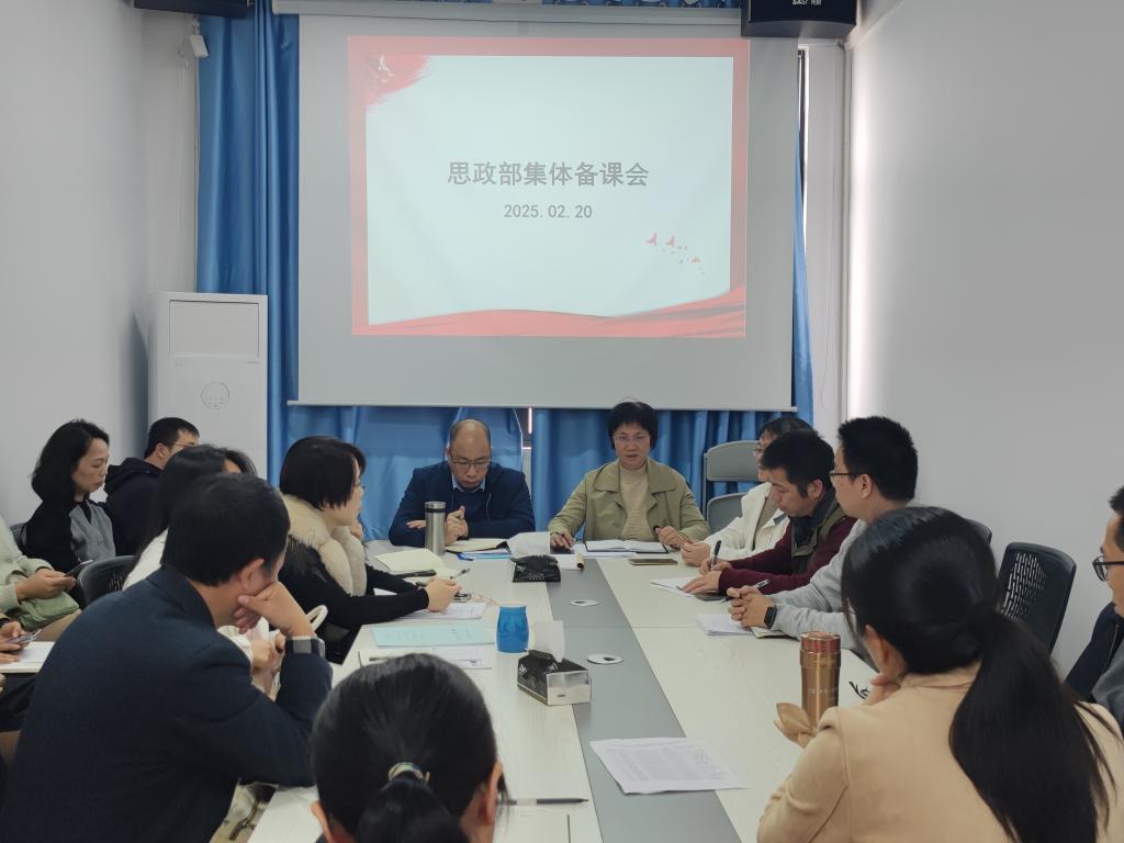 2月20日下午,思政部在教研楼506会议室召开新学期集体备课会。会议由思政部主任洪曼丽主持,全体思政课教师参加会议。