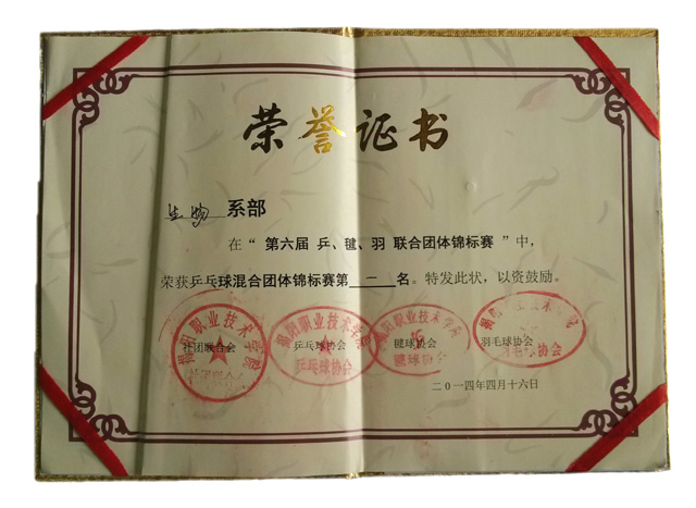 8日我系男子乒乓球队首战思政部代表队,以3:0的比分脱颖而出。10日对战机电系,两系在赛中实力相当,结果我系以3:2的比分险胜。14日对战信工系,同样以3:2的比分险先获胜晋级。16日我系与外语系拉开总决赛帷幕,最终以3:0的比分大胜,取得此次乒乓球男子赛的冠军。