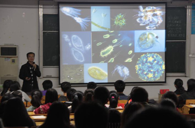 为丰富校园文化生活,扩大学生视野,唤起保护动物的意识,2013年12月8日下午,生物协会邀请指导老师罗集丰在教学楼AT31为我院学生开展了一场动物知识讲座。
