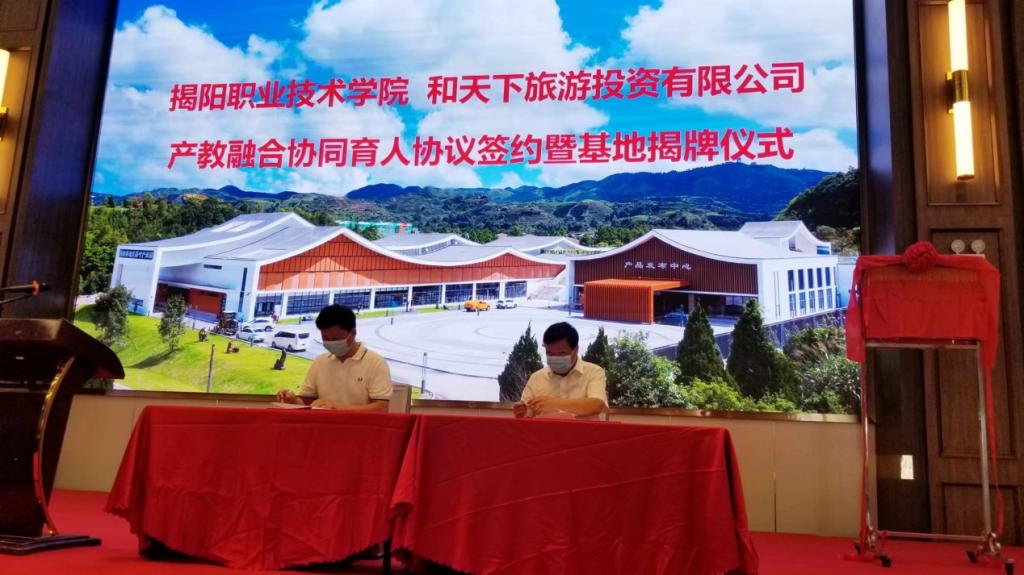 6月23日上午,院长罗恢远、组织人事处处长张汉良、教务处处长黄英铭、生物工程系负责人以及园林技术专业骨干教师一行前往和天下旅游投资有限公司参加园林技术专业产教融合协同育人工作签约暨基地揭牌仪式,受到和天下旅游投资有限公司董事长吴克东、副总经理袁健雄以及揭阳市和天下商务培训服务有限公司总经理刘超等各分公司高管与员工代表的热烈欢迎。张汉良主持签约仪式。