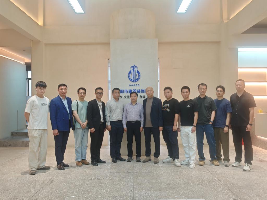 随后,一行人来到揭阳市建筑装饰协会,会长郭晓林代表揭阳市建筑装饰协会对罗恢远一行的到来表示热烈欢迎,他指出揭装协与学院的合作已有十余年,包含从日常教学、设计竞赛、学生实习、毕业生就业、公益基金等方面都有紧密的协作,希望在今后能掀起校企合作的新篇章。罗恢远对揭阳市建筑装饰协会对永利设计类专业的大力支持表示感谢,他谈到,揭阳地区建筑装饰设计类企业数量多、口碑好,这为永利室内艺术设计等专业的开办提供了良好的社会土壤与企业环境,校企双方应大胆拓展产学研协同育人的模式,例如谋划校企合作项目工作室、共同进行课程设计及教材编写、进一步拓宽“设计师进校园”活动的规模,让更多优秀设计师与学生进行长期稳定的互动交流,同时也希望专业能为揭阳地区培养更多的新生代设计师,为揭阳做出更多人民喜爱的设计作品。